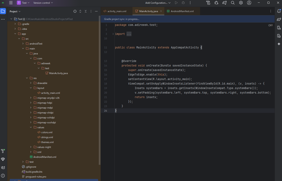 • MainActivity.java(またはMainActivity.kt)がメインのプログラムになります。