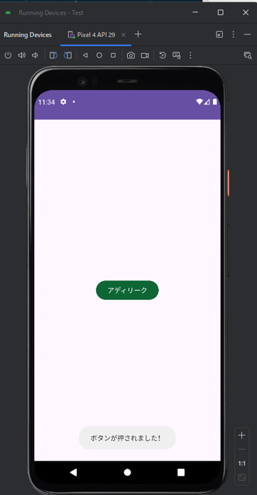 Toast.makeText(MainActivity.this, "ボタンが押されました!", Toast.LENGTH_SHORT).show();//トーストを表示する