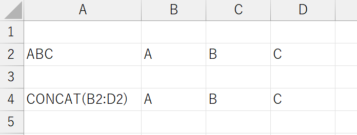 2. =CONCAT(セル範囲)でまとめたいセルを全て選択する