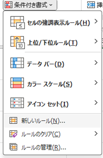 2. 「条件付き書式」→「新しいルール」を選択