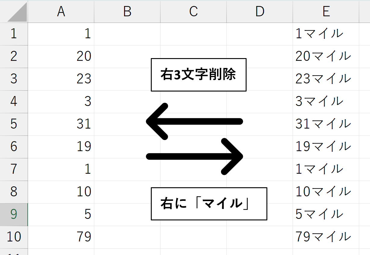 そこで今回は、JALの「マイル」という単位が付いていた場合を例に、数値だけを取り出す方法を解説します。