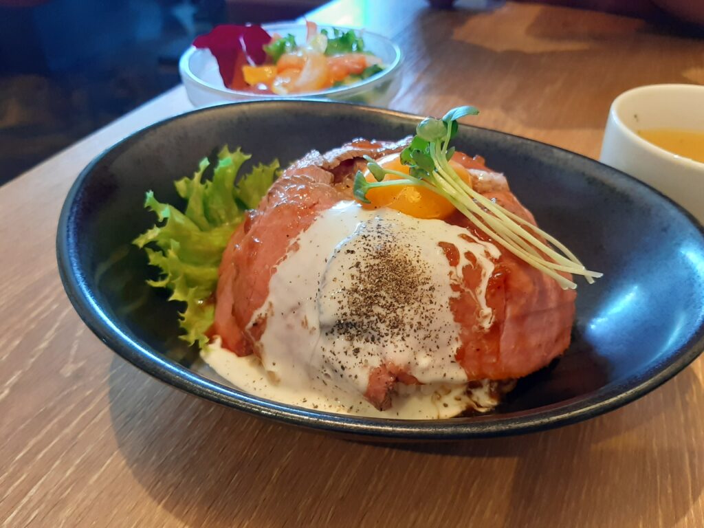 また、ローストビーフ丼もいただきました。肉の切り方がやや厚めな気はしましたが、お米にしみ込んだたタレも含めて大変おいしかったです。いずれこの川端珈琲店のメニュー全制覇したいと思います。私のおしゃれカフェランク上位に食い込んだお店でした。
